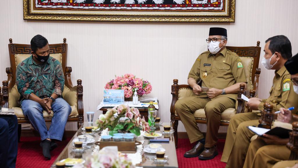 Gubernur Aceh, Ir. H. Nova Iriansyah, MT, didampingi Kaban Kesbangpol Aceh, Drs. Mahdi Efendi serta pejabat terkait lainnya, menerima kunjungan silaturrahmi dan audiensi, Ketua FPMPA Muhammad Jasdy beserta rombongan di Rumah Dinas Wakil Gubernur Aceh, Banda Aceh, Selasa (1/3/2022).