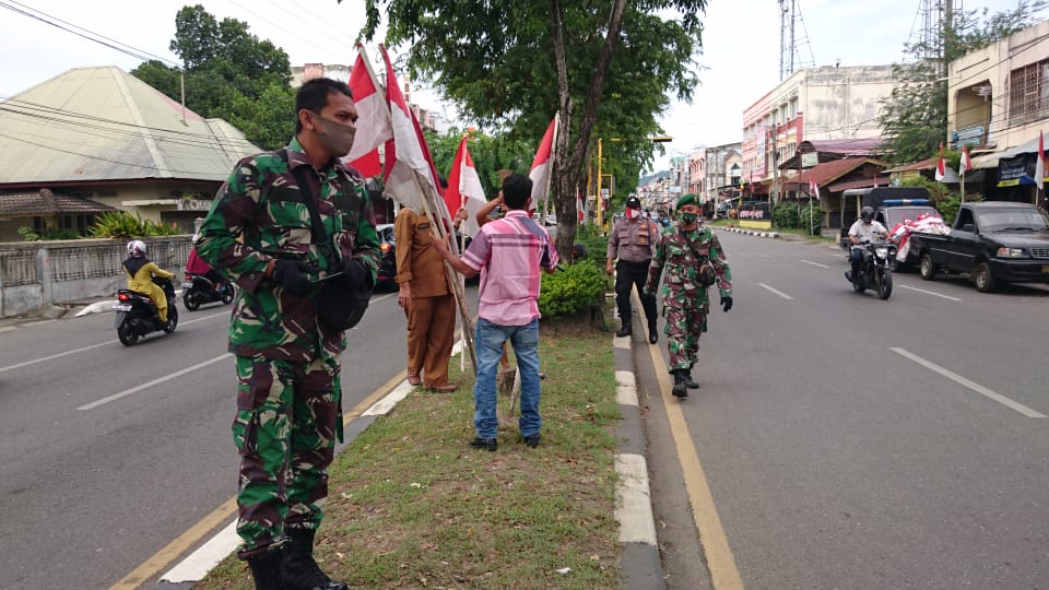 “Di sela-sela pemasangan bendera dan umbul-umbul, tim Muspika yang terdiri dari PNS Kantor Camat, anggota Koramil dan Polsek juga menyosialisasikan protokol kesehatan. Kita tidak bosan-bosannya mengimbau warga patuh agar Covid-19 tidak terus meluas,” kata Muhammad Rizal.