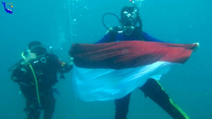 Analisaaceh.com, Banda Aceh | Dalam rangka memperingati Hari Ulang (HUT) RI ke 77, mahasiswa yang tergabung dalam Ocean Diving Club (ODC) Fakultas Kelautan dan Perikanan (FKP), Universitas Syiah Kuala (USK) Banda Aceh mengibarkan bendera merah putih di bawah laut, pantai Amad Ramanyang, Krueng Raya, Aceh Besar, Rabu (17/8/2022).