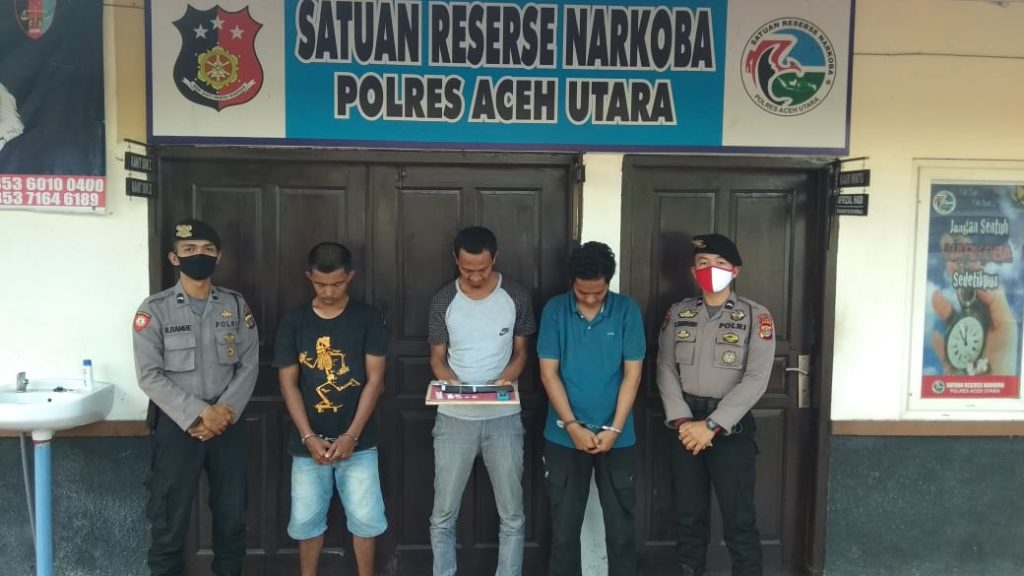 Analisaaceh.com, Lhoksukon | Pria berusia 40 tahun berinisal TM serta dua temannya IS (29) dan Mul (31) dibekuk polisi dari sebuah kedai kelontong di Gampong Panteu Breuh Kecamatan Baktiya, Aceh Utara, Selasa (23/6/2020), ketiganya terciduk sedang merakit bong hendak memakai sabu.