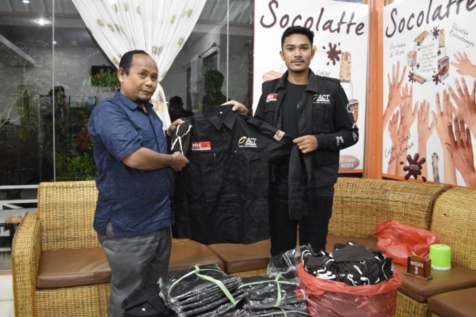 Analisaaceh.com, Pidie Jaya | Socolatte menyerahkan baju PDL kepada Masyarakat Relawan Indonesia (MRI) Pidie Jaya – Aksi Cepat Tanggap (ACT) Aceh yang merupakan bagian dari Fundraising untuk membantu relawan dalam melakukan aksi kemanusiaan di Pidie Jaya.