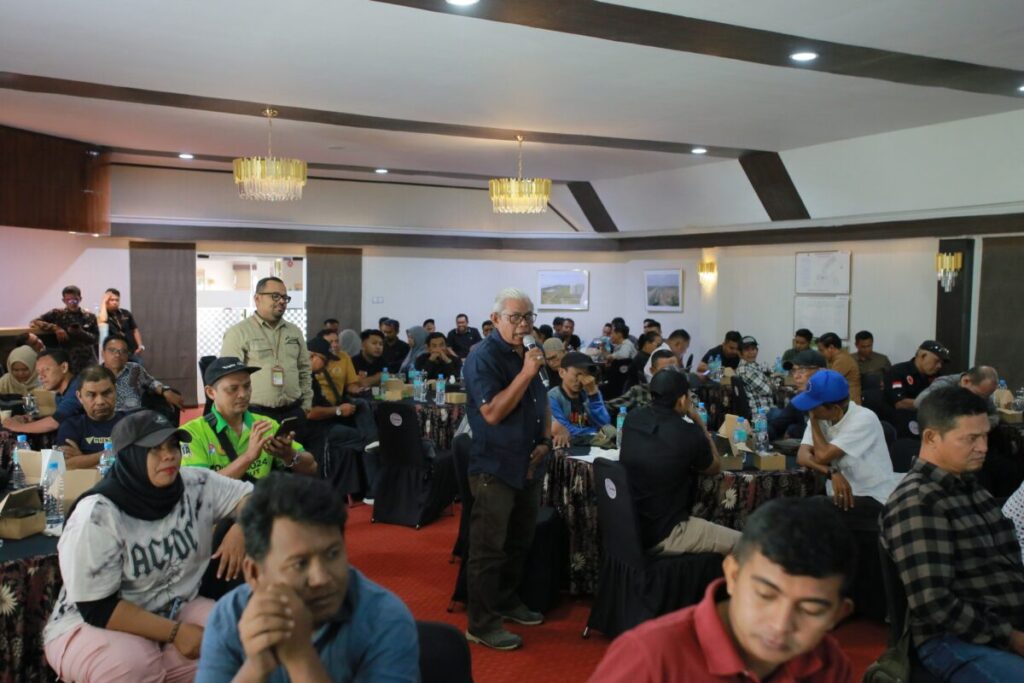Wartawan senior, M. Nasir, menyampaikan pendapatnya dalam sesi diskusi pada acara Media Gathering dan Munggahan PT Perta Arun Gas (PAG) di Guest House PAG Lhokseumawe, Kamis (27/2/2025). Acara ini dihadiri oleh puluhan jurnalis dari berbagai organisasi pers di Lhokseumawe dan Aceh Utara.