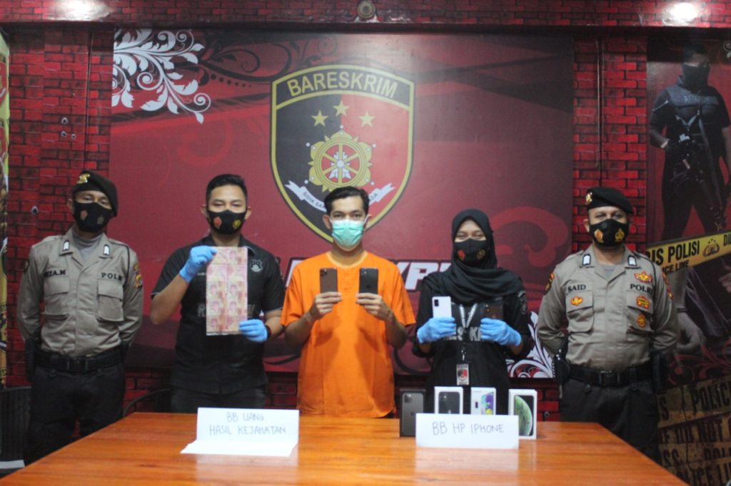 “Pelaku menghubungi penjual barang elektronik berupa handphone Iphone 11 128 GB di toko UFO Cell,” sebut Kasatreskrim didampingi Kanittidik 3 Ipda Subihan Afuan Ardhi, S.Trk pada Sabtu (2/1/2021).