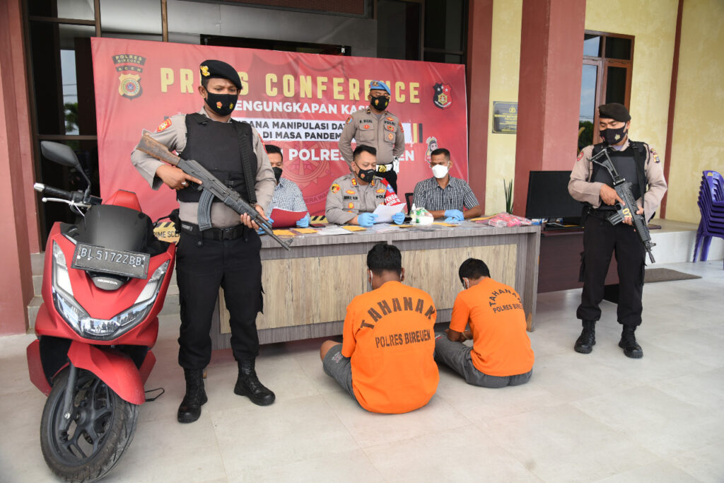 Analisaaceh.com, Bireuen | Polisi berhasil meringkus dua pelaku pemalsu data Kartu Prakerja di Bireuen. Bahkan pelaku telah meraup keuntungan ratusan juta dari aksi kejahatannya.
