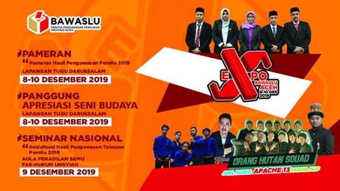 ANALISAACEH.COM, BANDA ACEH | Panitia Pengawas Pemilihan (Panwaslih) atau Badan Pengawas Pemilu (Bawaslu) Provinsi Aceh menyelenggarakan Ekspo Bawaslu Provinsi Aceh yang pertama kalinya sebagai bentuk pertanggungjawaban kinerja mereka kepada publik. Ekspo yang dikemas dengan berbagai rangkaian kegiatan itu digelar di Lapangan Tugu Darussalam, Banda Aceh, pada Sabtu-Selasa (8-10/12/2019).