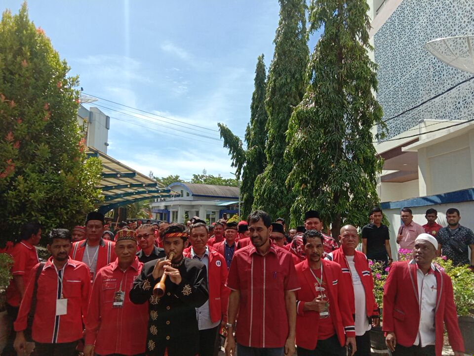 Ketua Umum PA, Muzakir Manaf bersama puluhan kader tiba di kantor KIP pada pukul 15.00 WIB. Partai Aceh menjadi parlok pertama yang mendaftar sebagai peserta Pemilu 2024 mendatang.
