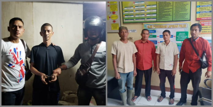 Sinar Muda menyerahkan diri didampingi temannya, Ridwan Harahap dan anggota Bataliyon Rider 114 Bener Meriah.