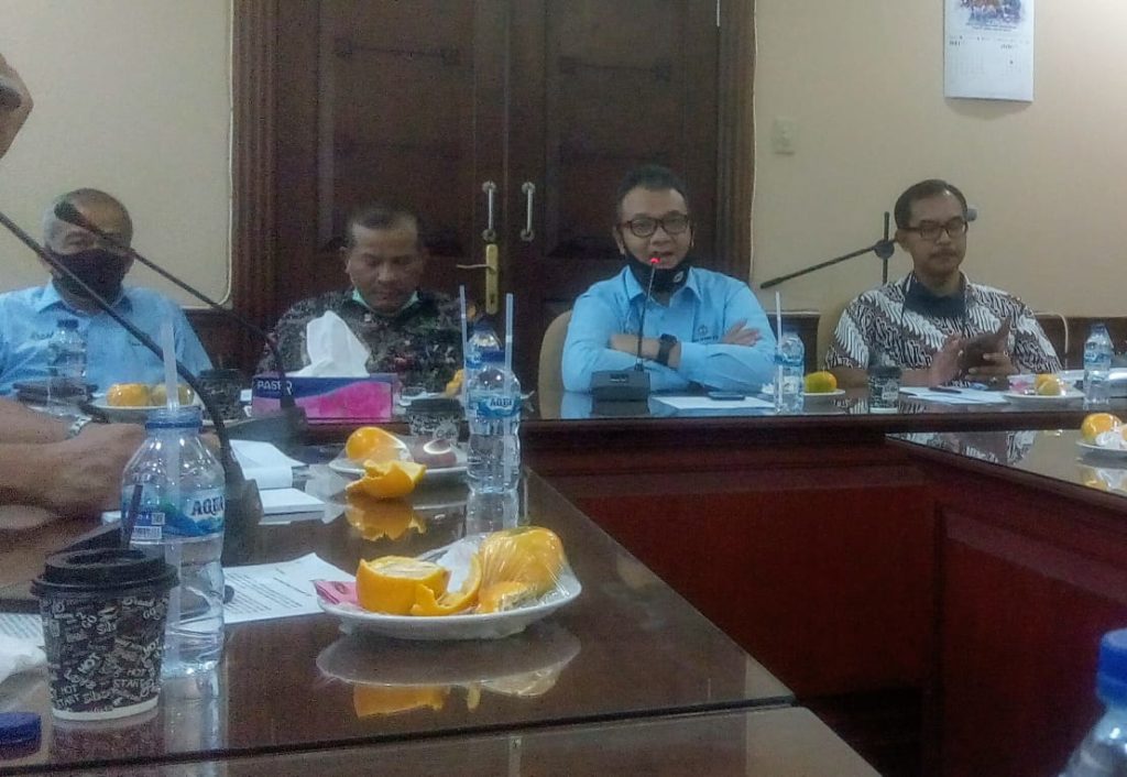 Dirut PIM Husni Achmad Zaki (dua kanan) pada kegiatan konpers di aula rapat keupula, komplek PIM kawasan Krueng Geukuh, Aceh Utara, Kamis (2/7/20)