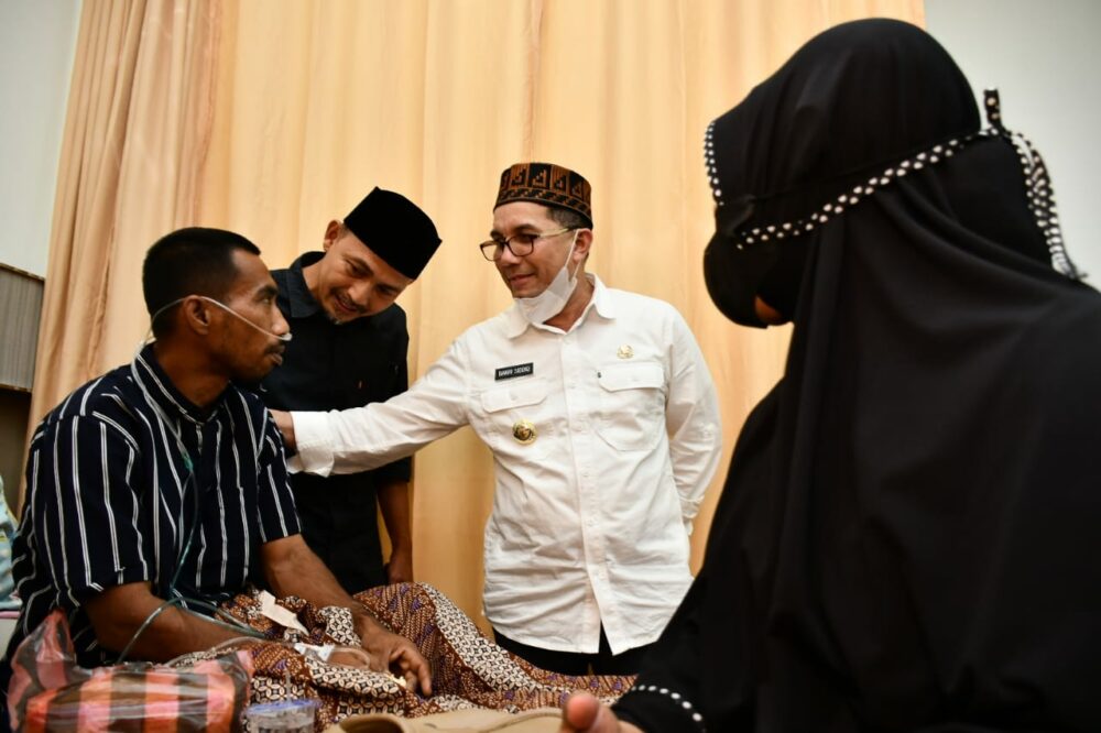 Pj Wali Kota Banda Aceh, Bakri Siddiq sedang menyapa pasien saat mengunjungi RSUD Meuraxa, Jum'at (8/7/2022). Foto: Ist