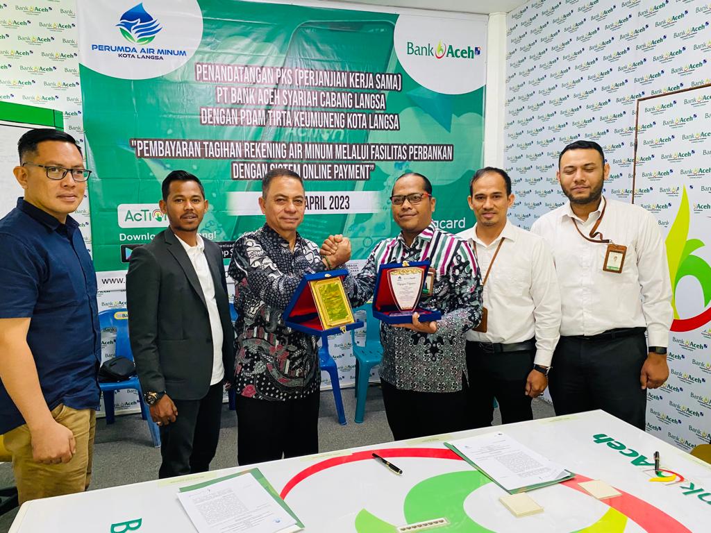 Analisaaceh.com, Langsa | Perusahaan Daerah Air Minum (PDAM) Tirta Keumuneng Langsa dan Bank Aceh Syariah (BAS) Cabang Langsa jalin kerjasama tentang pembayaran tagihan rekening air minum melalui fasilitas perbankan dengan sistem online payment, Kamis (6/4/2023).