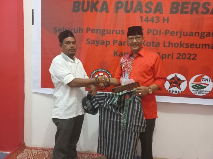 Analisaaceh.com, Lhokseumawe | DPC PDI Perjuangan Kota Lhokseumawe menggelar buka puasa ramadhan 1443 H bersama pengurus hingga sayap dan badan otonom partai. Buka puasa bersama dan santunan anak yatim dirangkai dengan penyerahan bingkisan dari ketua umum, Megawati Soekarnoputri untuk kepala dusun desa setempat.