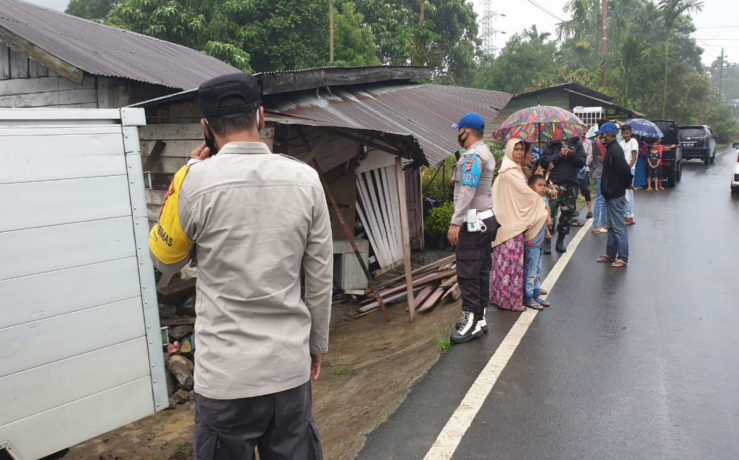 “Sesampai di lokasi kejadian, ban mobil sebelah kanan pecah, lalu mobil hilang keseimbangan dan keluar dari jalur, sehingga menabrak satu unit rumah milik Sabaria (52) warga setempat hingga rusak” tutur Ipda Dasril