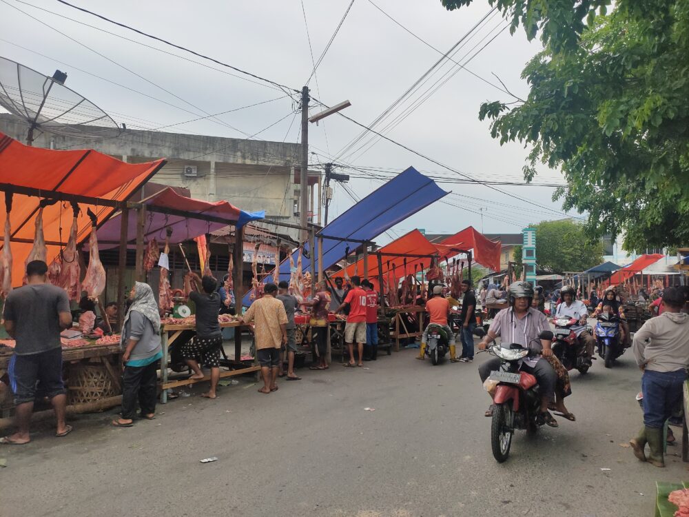 Para pedagang daging musiman di jalan Pekong Kota Langsa Kecamatan Langsa Kota. Foto : Analisaaceh.com/Chairul