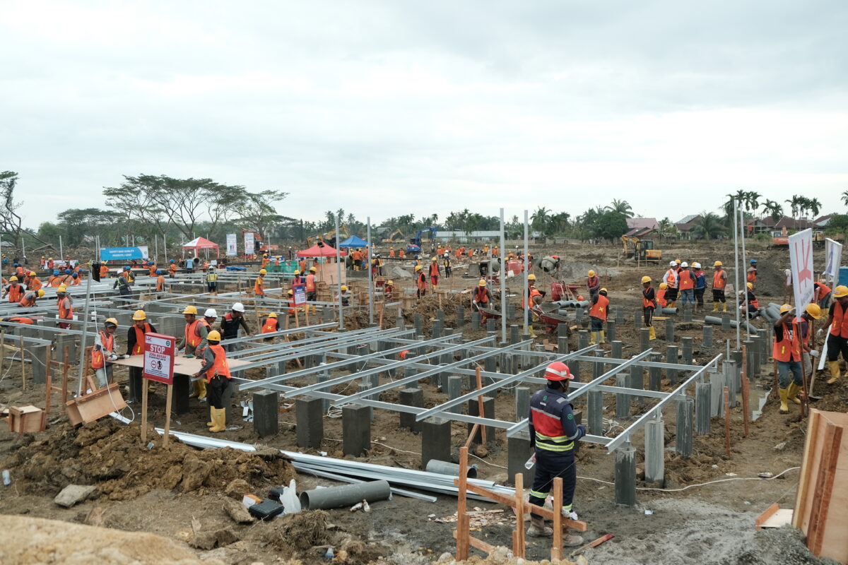 Ket foto: proses pembangunan unit Hunian Danantara di Aceh Tamiang, foto: Hutana Karya.