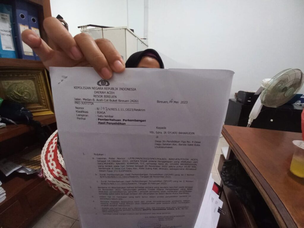 Syukri mengaku melaporkan perkara tersebut ke Polres Bireuen pada 24 Oktober 2022, nomor LP/B/244/X/2022/SPKT/Polres Bireuen/Polda Aceh 2022, dengan objek aset lahan milik perusahaan seluas lebih kurang 13 hektar di kawasan Gampong Blang Keutumba, Kecamatan Juli, Bireuen.