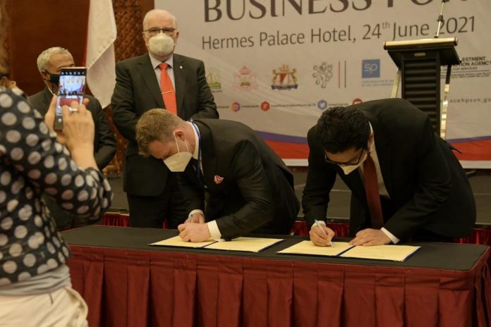 Selain itu, Kepala Dinas Penanaman Modal dan Pelayanan Terpadu Satu Pintu Provinsi Aceh tersebut, juga melakukan penandatanganan perjanjian kerja sama dengan Perusahaan Orka Venture Ltd dan Consulting s.r.o. serta perusahaan lainnya dari Republik Ceko.