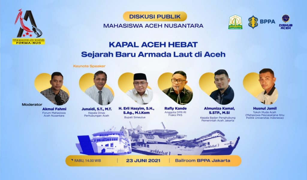 Ia menyebutkan, diskusi tersebut nantinya akan digelar secara virtual dari Kantor Badan Penghubung Pemerintah Aceh (BPPA) yang berlokasi di Indramayu, Menteng, Jakarta Pusat. Dengan mengusung tema “Kapal Aceh Hebat, Sejarah Baru Armada Laut Di Aceh”.