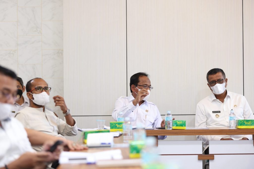 Asisten Perekonomian dan Pembangunan Sekda Aceh Ir. Mawardi didampingi Kepala SKPA terkait menggelar rapat koordinasi persiapan pelaksanaan PORA ke 14 tahun 2022 bersama Wakil Bupati Pidie, Fadhlullah TM. Daud, ST beserta rombongan di Ruang Rapat Potensi Daerah II Setda Aceh, Banda Aceh, Rabu (15/9/2021).
