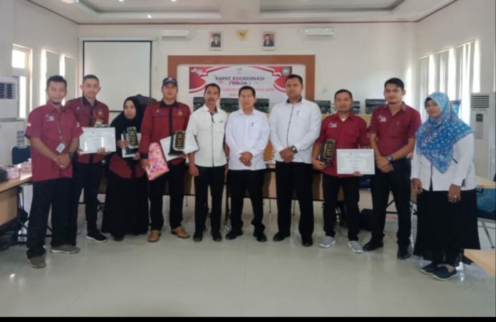 ANALISACEH.COM, BLANGPIDIE | Pemerintah Kabupaten Aceh Barat Daya (Abdya) lakukan Rapat Koordinasi SDM PKH Kabupaten setempat tahun 2020, sekaligus penyerahan Award atau piagam penghargaan kepada pendamping dan operator PKH teladan tahun 2019 di Aula Bappeda Kabupaten Aceh Barat Daya, Rabu (22/01/2020).