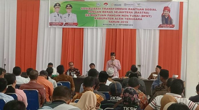 Analisaaceh.com, AGARA | Pemerintah Kabupaten Aceh Tenggara mulai sosialisasikan pengalihan Program Bantuan Sosial Beras Sejahtera (Bansos Rastra) menjadi Bantuan Pangan Non Tunai (BPNT) tahun 2019. Sosialisasi dilaksanakan di Aula Kantor Bappeda setempat, Jum’at (20/09).