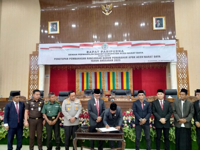 Analisaaceh.com, Blangpidie | Pemerintah Kabupaten (Pemkab) Aceh Barat Daya (Abdya) bersama Dewan Perwakilan Rakyat Kabupaten (DPRK) setempat menyetujui Rancangan Qanun tentang Perubahan Anggaran Pendapatan dan Belanja Kabupaten (APBK-P) Tahun Anggaran 2025.