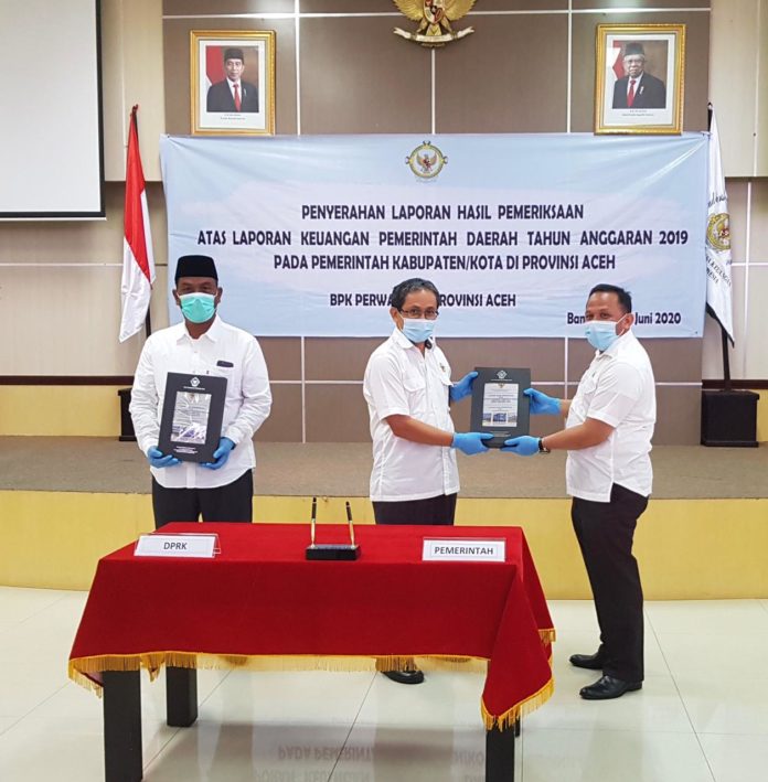 Penghargaan itu diserahkan Kepala BPK RI Perwakilan Provinsi Aceh Arif Agus dan diterima langsung oleh Bupati Pidie Jaya H. Aiyub Abbas di Kantor BPK RI Perwakilan Aceh Banda Aceh pada Hari Rabu 17 Juni 2020 dengan tetap mengikuti prosedur protokoler kesehatan di tengah Pandemi Covid-19.