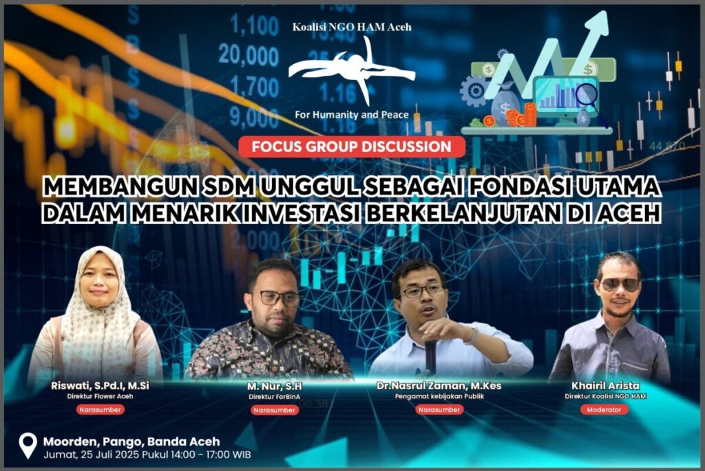 Hal ini dikatakan dalam acara FGD dengan tema “membangun SDM Unggul sebagai fondasi utama dalam menarik investasi berkelanjutan di Aceh” di Moorden Pango, Jum’at (25/7/2025) sore.