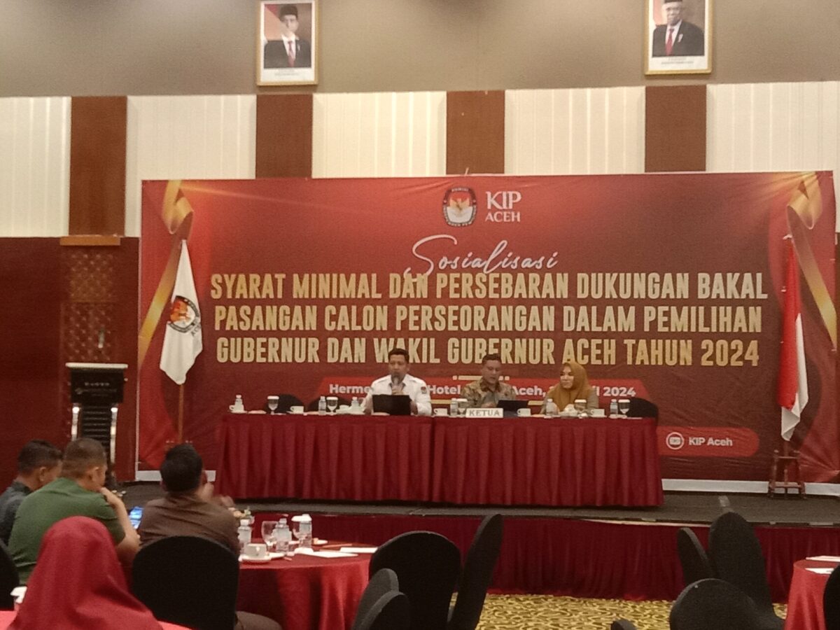 Hal ini disampaikan dalam sosialisasi syarat minimal dan persebaran dukungan bakal pasangan calon perseorangan dalam pemilihan Gubernur dan Wakil Gubernur Aceh tahun 2024, di hotel Hermes, Kota Banda Aceh, Senin (29/4/2024) sekira pukul 11.00 WIB.