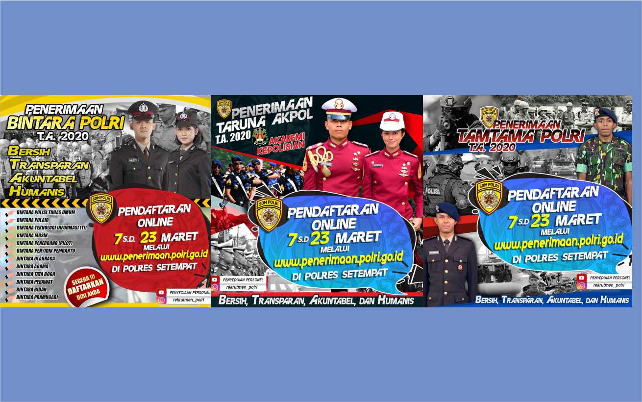 Selanjutnya, bagi peserta yang berminat mengikuti seleksi penerimaan anggota polri ini dapat menanyakan syarat dan ketentuan di Polres setempat. Ada tiga layanan rekrutmen secara bersamaan. Yakni Akademi Kepolisian, Bintara Polri dan Tamtama Polri.