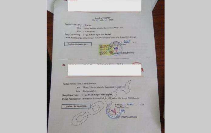 Betapa tidak, sejak dibeli melalui pihak rekanan pada tahun 2018, hingga kini, pihak penerima yakni Kelompok Swadaya Masyarakat (KSM) di Kota Lhokseumawe belum menerima BPKB dan STNK.