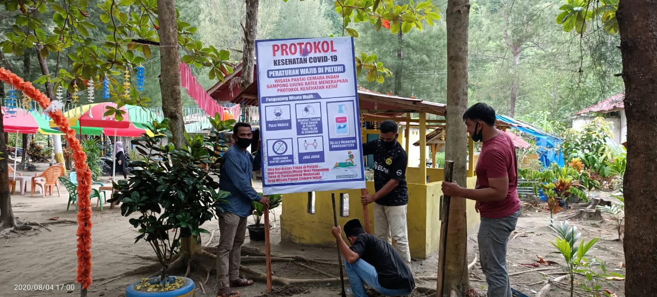 Analisaaceh.com, Tapaktuan | Setiap pengunjung yang datang ke objek wisata Pantai Cemara Indah, Gampong Ujung Batee Kecamatan Pasie Raja, Aceh Selatan wajib mengikuti protokol kesehatan Covid-19. Bahkan bagi yang melanggar akan disuruh keluar dan pulang dari wilayah tersebut.