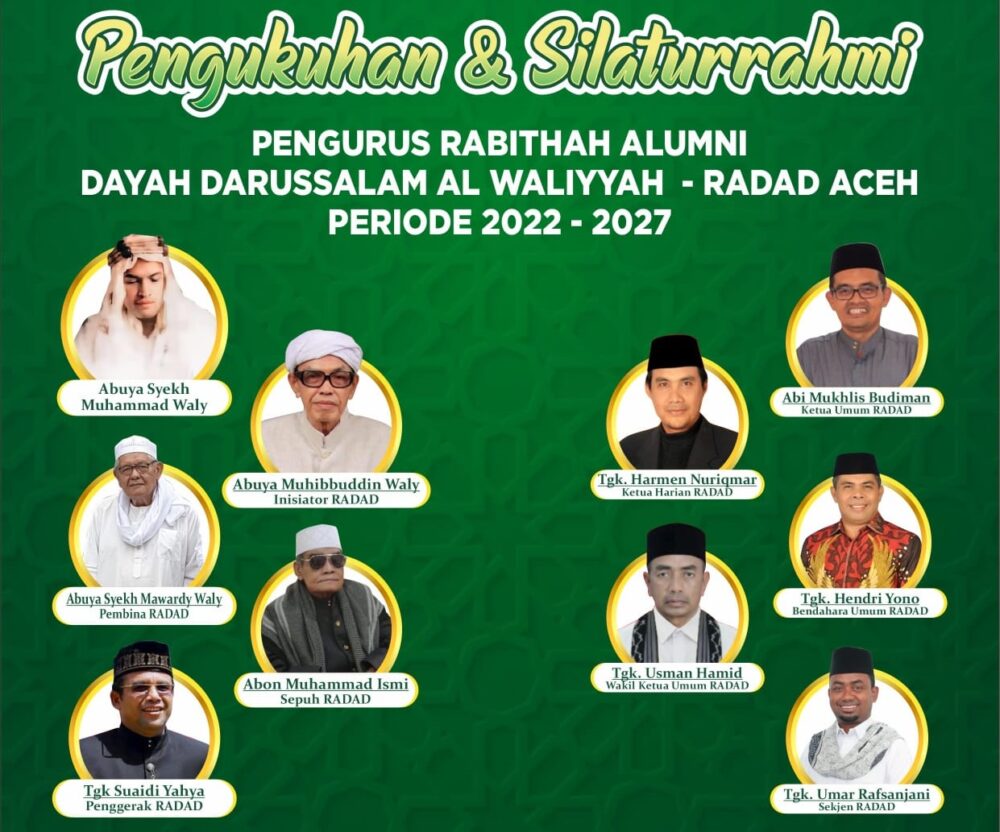 Pengukuhan, silaturahmi sekaligus Muzakarah Ulama tersebut berlangsung pada 22–24 November 2022. Turut hadir ratusan alumni dari berbagai kabupaten/kota, para pengurus serta Dewan Pembina RADAD Abuya Mawardi Waly Alkhalidy.
