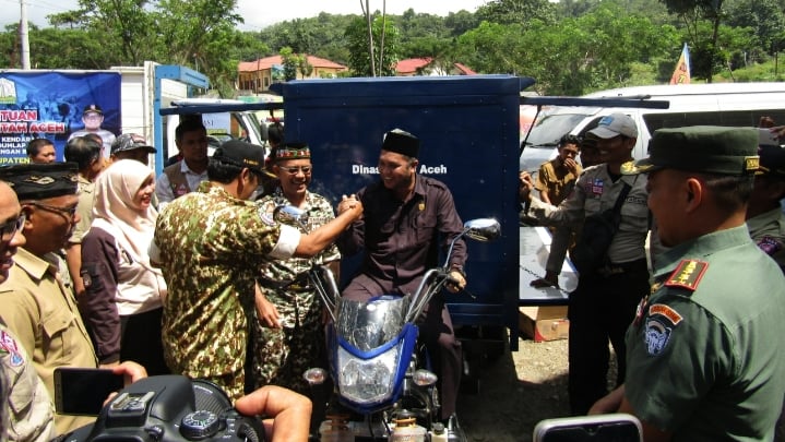 Pantauan analisaaceh.com, Dinsos Aceh turut memberikan satu unit motor dapur umum lapangan beserta alat kelengkapannya.