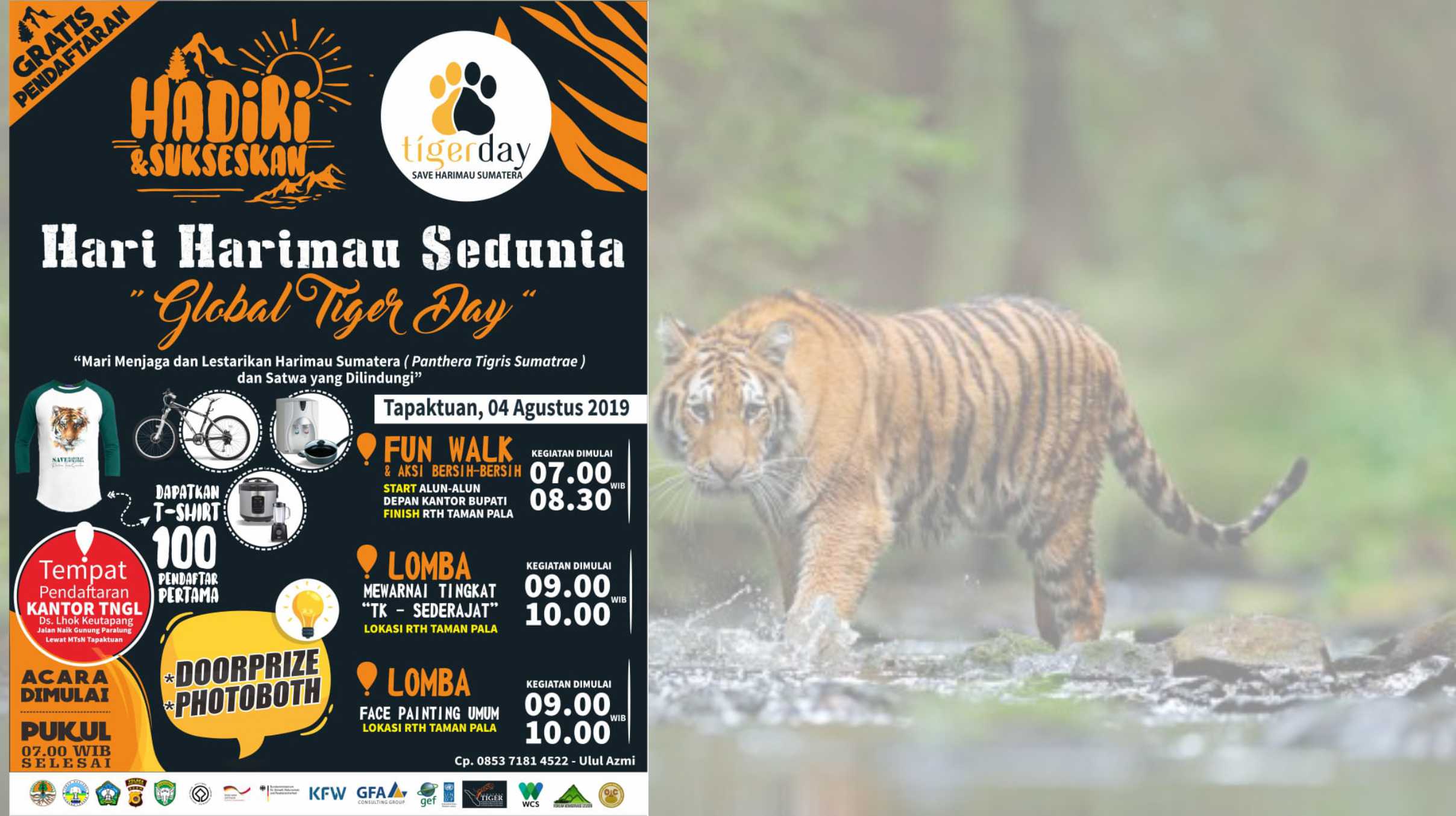 Dalam rangka peringatan Global Tiger Day (GTD) Tahun 2019, Balai Taman Nasional Gunung Leuser (BBTNGL) melalui Bidang Pengelolaan Taman Nasional Wilayah I Tapaktuan telah menyiapkan serangkaian acara. Peringatan Hari Harimau Sedunia “Global Tiger Day” tema yang di usung “Mari Menjaga dan Lestarikan Harimau Sumatera (Panthera Tigris Sumatrae) dan Satwa yang di Lindungi”. Tema tersebut meninggalkan pesan konservasi kepada generasi agar senantiasa menjaga, mempertahankan dan melestarikan satwa endemik Sumatera ini dari pada ancaman kepunahan. Kondisi itu tentunya perlu semangat dan dukungan seluruh pihak untuk siap menyatakan “Stop Perburuan Harimau Sumatera”.