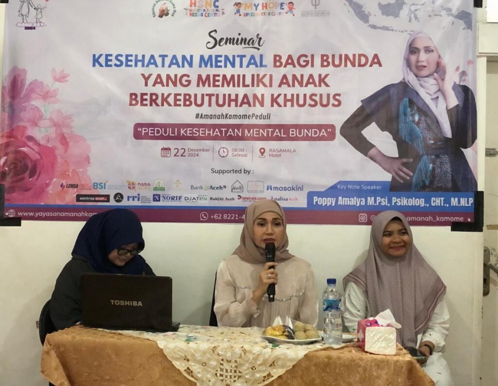 Analisaaceh.com, Banda Aceh | Yayasan Amanah Kamome, Humeira Special Need Center, dan Biro Psikologi Psikodinamika akan menggelar seminar bertema “Peduli Kesehatan Mental Bunda yang Memiliki Anak Berkebutuhan Khusus.” Kegiatan ini diselenggarakan untuk memperingati Hari Ibu Nasional 2024.