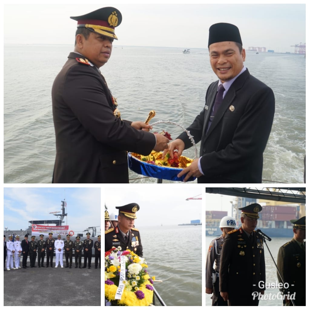 Analisaaceh.com, MEDAN | Wakil Kepala Kepolisian Daerah Sumatera Utara (Waka Poldasu), Brigjen Mardiaz Kusin Hananto memimpin peringatan hari Pahlawan 10 November 2019 dengan agenda puncak tabur bunga diperairan Belawan, Kapolres Pelabuhan Belawan AKBP Ikhwan juga mengikuti tabur bunga di laut, Minggu (10/11).