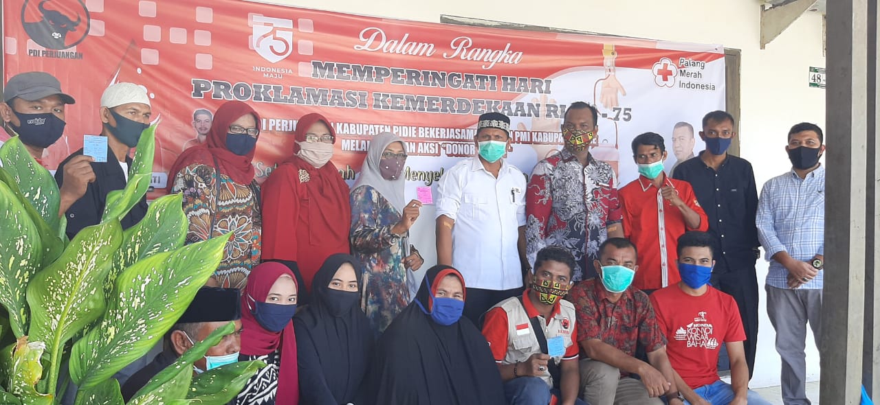 Sementata itu Ketua PDI Perjuangan Pidie Muhammad Husen mengatakan, memaknai kemerdekaan itu dapat dilakukan dengan bermacam kegiatan yang positif. PDI Perjuangan Pidie dalam peringatan 75 tahun kemerdekaan melakukan kegiatan bakti sosial dan donor darah.