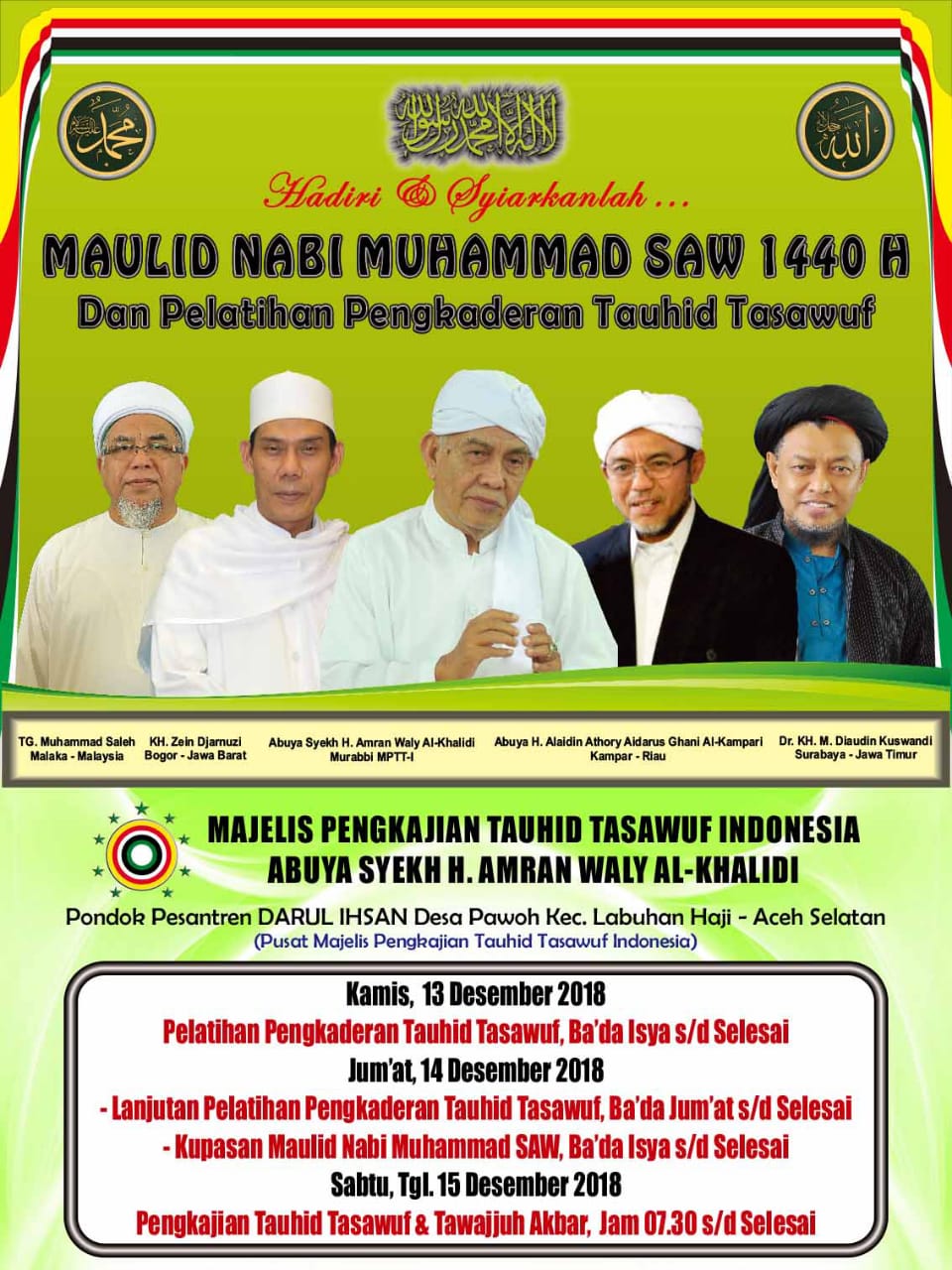 Aceh Selatatan, Analisaaceh.com – Majelis Pengkajian Tauhid Tashawuf Indonesia Abuya Syekh Haji Amran Waly Alkhalidy (MPTT-I) akan laksanakan Peringatan Maulid Nabi Muhammad SAW dan Pelatihan Kader.