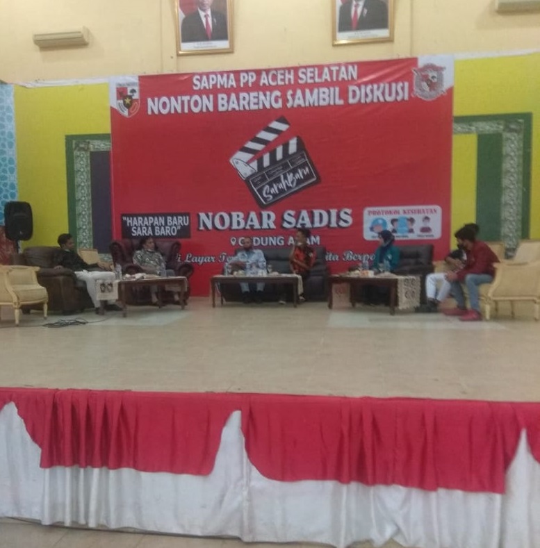 Analisaaceh.com, Tapaktuan | Dalam rangka Peringatan Hari Sumpah Pemuda ke-92 dan Hari jadi Pemuda Pancasila yang ke-61, SAPMA Pemuda Pancasila Aceh Selatan menggelar Nonton Bareng Sambil Diskusi (Nobar Sadis) di Rumoeh Agam Tapaktuan, Rabu (28/10) malam.