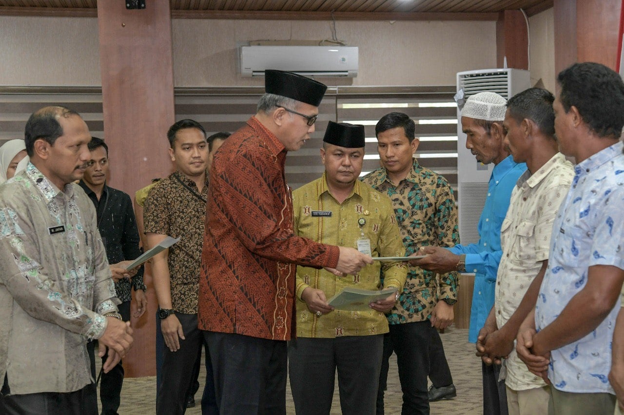 Dalam kesempatan tersebut, Plt Gubernur Nova juga menyerahkan sertifikat tanah secara simbolis kepada masyarakat miskin dari 5 kabupaten, yaitu Kabupaten Pidie Jaya, Aceh Barat, Nagan Raya, Aceh Selatan, dan Aceh Singkil. Sertifikat yang diberikan tersebut merupakan bagian dari 1.113 bidang tanah yang telah disertifikasi pada tahun 2019 lalu.