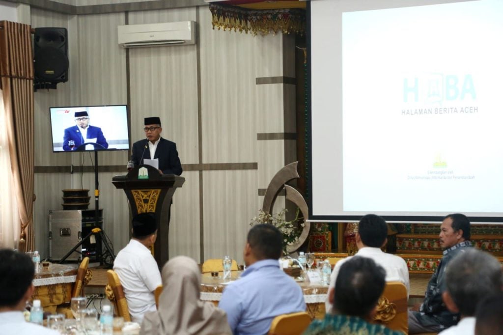 Plt. Gubernur Aceh, Ir. Nova Iriansyah, MT melaunching aplikasi Halaman Berita Aceh (HABA) di Aula Rumah Dinas Wakil Gubernur, Banda Aceh, Jumat 14/2/2020. HABA adalah pusat data yang menampilkan informasi tentang layanan publik di Aceh