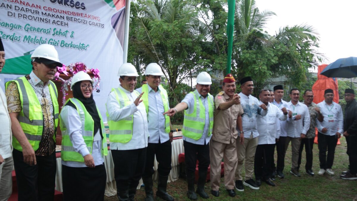 Peletakan ini turut dihadiri langsung oleh Deputi Bidang Promosi dan Kerjasama Badan Gizi Nasional (BGN) Nyoto Suwignyo, Bendahara Umum Inkopontren Ir. H. Muhammad Azhari, Ketua Inkopontren H. Hapi zajuli Direktur pengembangan dr BGN muhammmad rizal, S.H., M.H., PPIR Mayjen TNI Hari Mulyono, serta Pangdam Iskandar Muda Mayjen TNI Nico Fahrizal. (Yuna)