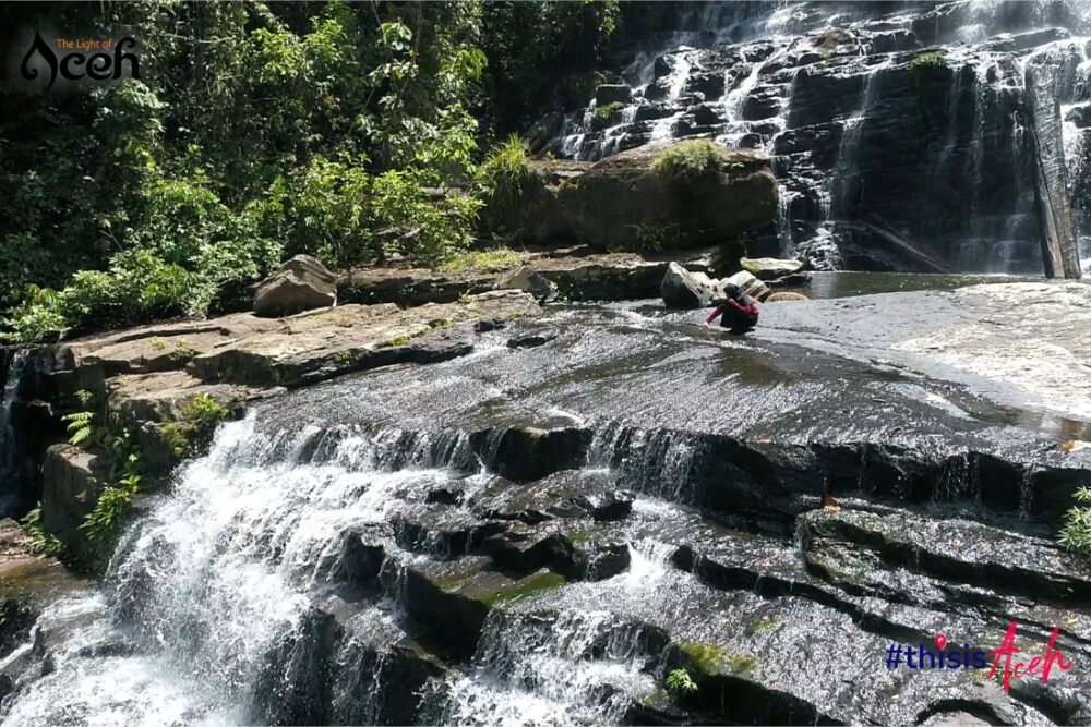 Setelah menempuh perjalanan lebih kurang 30 menit, rasa lelah tersebut terobati ketika tiba di lokasi. Pengunjung disuguhkan dengan pemandangan yang menakjubkan. Wisatawan akan melihat air terjun dari anak-anak tangga yang eksotis bak “surga yang tersebunyi”.
