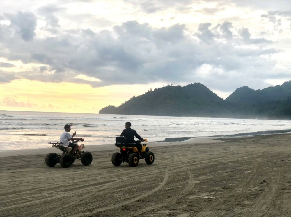 Tak hanya itu, pengunjung juga dapat menggunakan sepeda motor pantai sambari menikmati pemandangan serta kolam pemandian yang bagus.