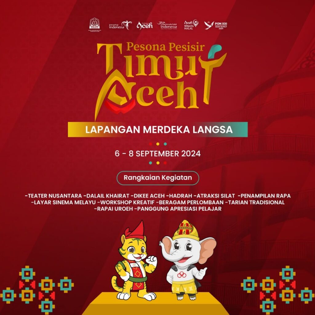 Analisaaceh.com, Langsa | Dinas Kebudayaan dan Pariwisata (Disbudpar) Aceh menggelar Pesona Pesisir Timur Aceh 2024 di Kota Langsa selama tiga hari, mulai Kamis, 6 September hingga Minggu, 8 September 2024. Setelah sukses di Aceh Tamiang, acara ini akan menampilkan ragam seni dan budaya Aceh di Lapangan Merdeka, Langsa.