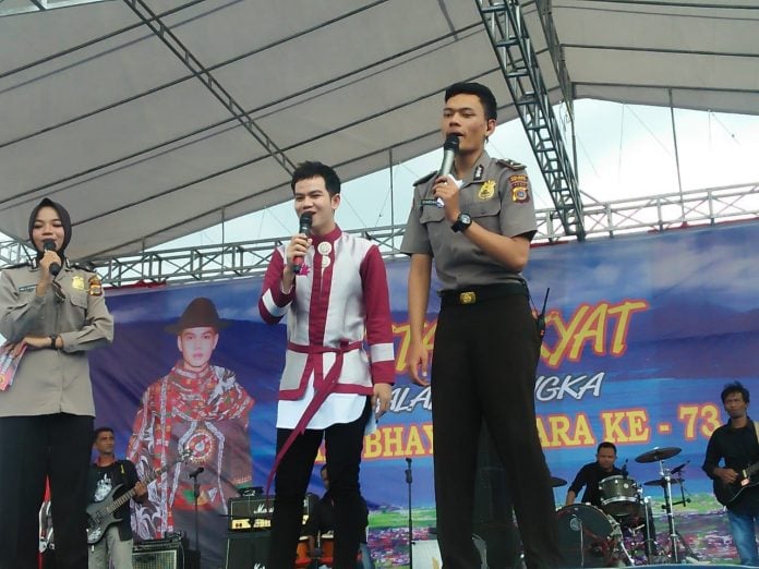 HUT Bhayangkara Ke – 73 Polres Aceh Tengah Tampilkan Artis Faul Lida Di Lapangan Blang Bebangka.