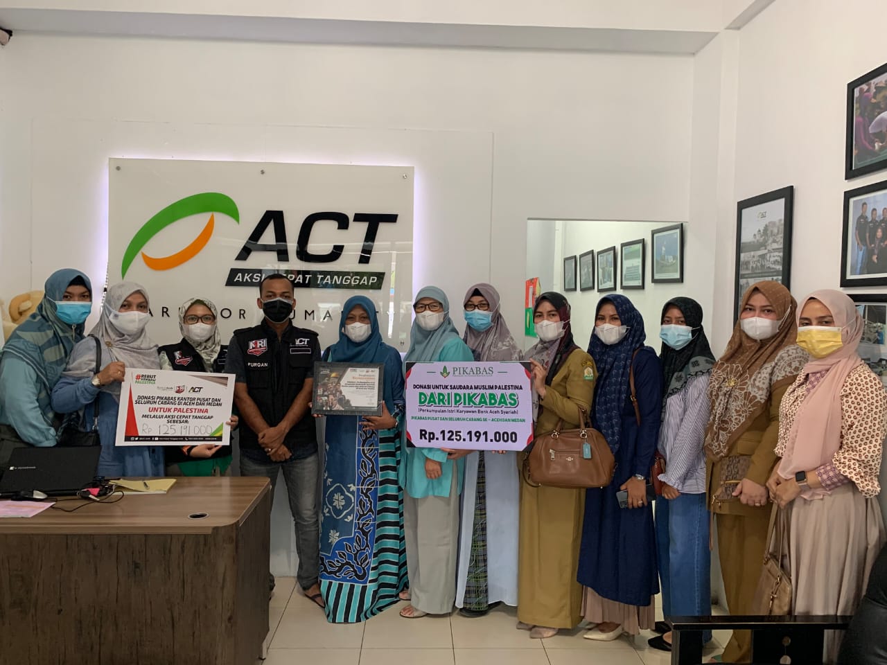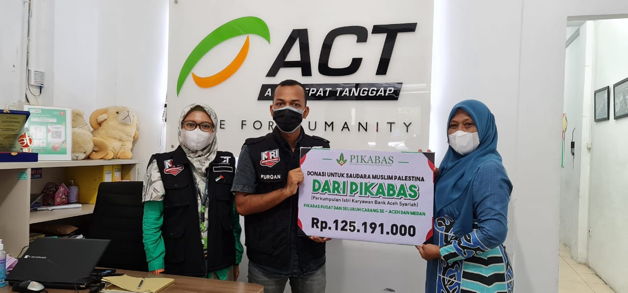 Sementara itu, Kepala Cabang Aksi Cepat Tanggap (ACT) Aceh Zulfurqan memberikan apresiasi atas bantuan yang diberikan dan akan segera disalurkan ke Palestina dalam bentuk pangan, obat-obatan dan pemulihan Saudara di Palestina.