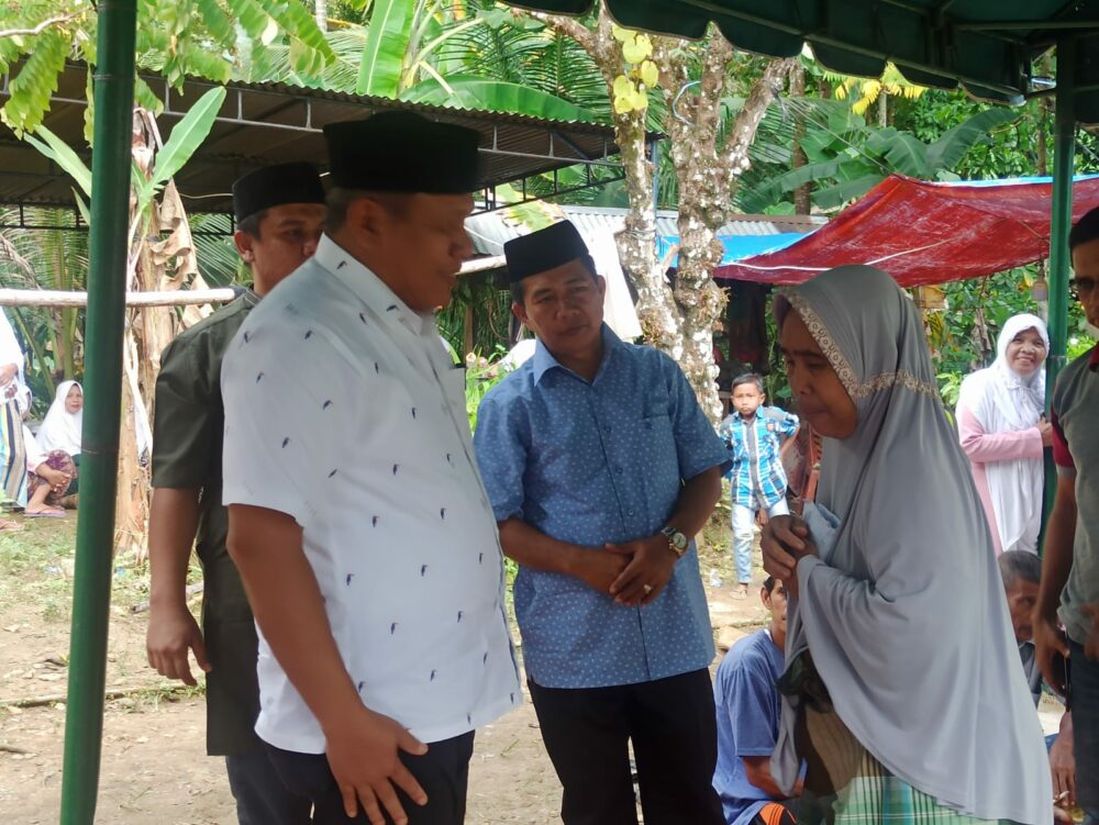 Pj Bupati Abdya, Darmansah saat melayat ke rumah almarhum Sudirman di Gampong Alu Seulaseh, Kecamatan Jeumpa pada Minggu (25/09/2022).