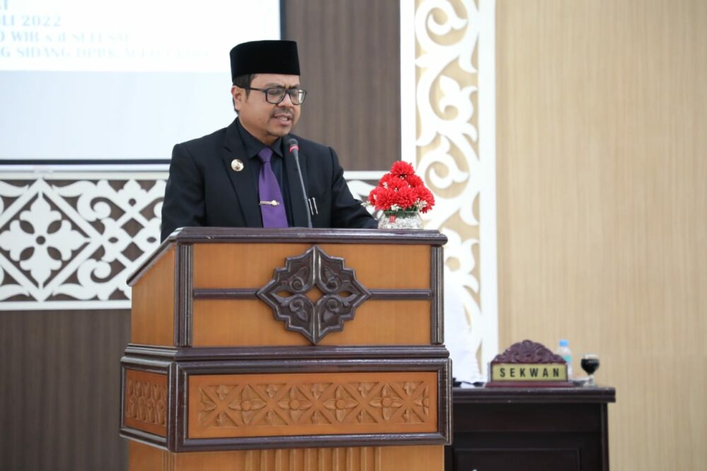 Analisaaceh.com, Lhoksukon | Penjabat (Pj) Bupati Aceh Utara Azwardi, AP, MSi, menyampaikan nota keuangan Rancangan Kebijakan Umum Anggaran Prioritas Plafon Anggaran Sementara (KUA – PPAS) APBK Aceh Utara Tahun 2023, Jumat (29/7/2022).