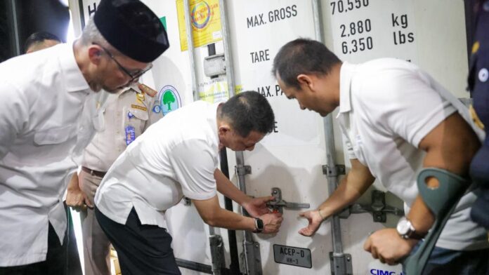 Penglepasan Ekspor 10 ton tuna itu dimulai dengan peninjauan truk kontainer, dilanjutkan dengan penyegelan yang dilakukan Pj Gubernur Aceh.